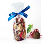 Chocolate made from cocoa paste, scent of whisky and hazelnut praline with a pyramidal appearance. Texture and flavour of a whisky chocolate truffle.
