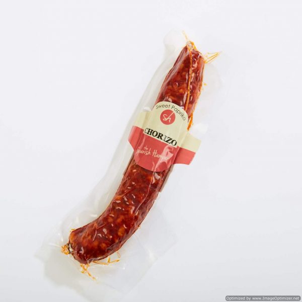 A delicious sweet chorizo from Segovia. It is a tapas classic. It can be eaten as it is or can be cooked. Excellent to give flavour to casseroles.