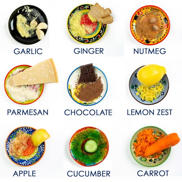 This authentic grater plate is made with a unique pattern that allows you to grate your ingredient without any waste! The plate allows you to grate not only garlic but also try ginger, parmesan, nuts, carrots, chocolate….. easy to use and dishwasher safe.