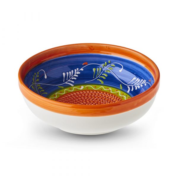 Our Andalusian artisan pottery has integrated the extremely useful pattern that allows to grate-paste-pure your raw ingredients into a nice size salad bowl. Clever!