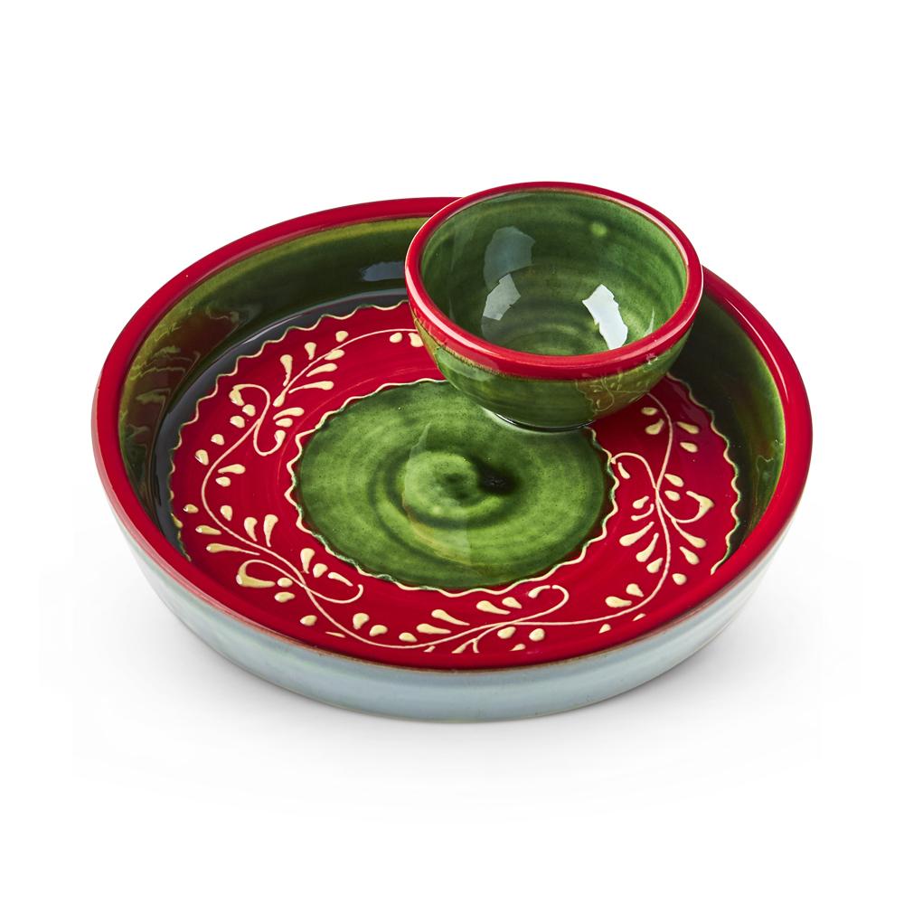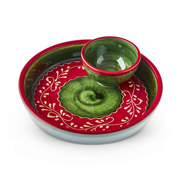 Designed for the purpose of Olives with a bowl for the stones but also very useful for bread with olive oil and vinegar dipping.  The choice is yours….